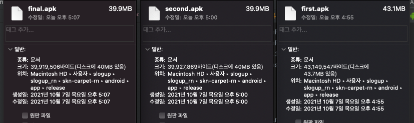 소스코드 난독화 및 최적화를 진행하며 앱의 크기가 축소 되었다.